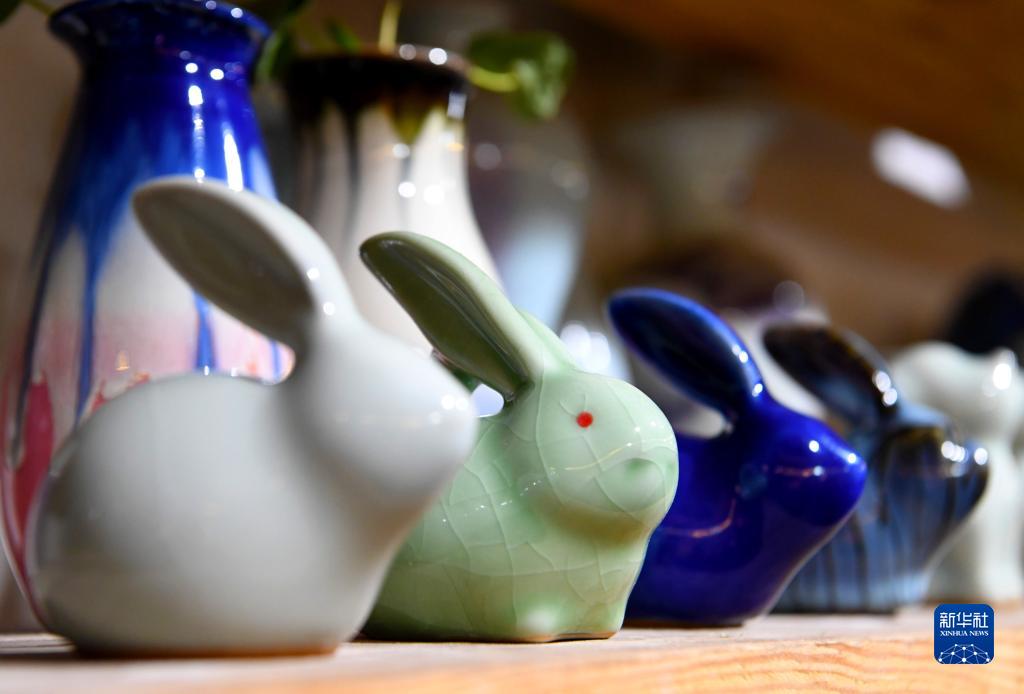 這是1月23日在河南省禹州市神垕鎮一家文創店拍攝的鈞瓷生肖兔。