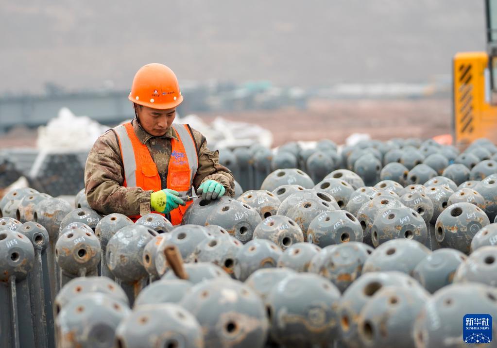1月23日,在重慶兩江新區新能源汽車產業園基礎設施配套項目現場,工人對即將使用的鋼結構材料進行逐一檢查。