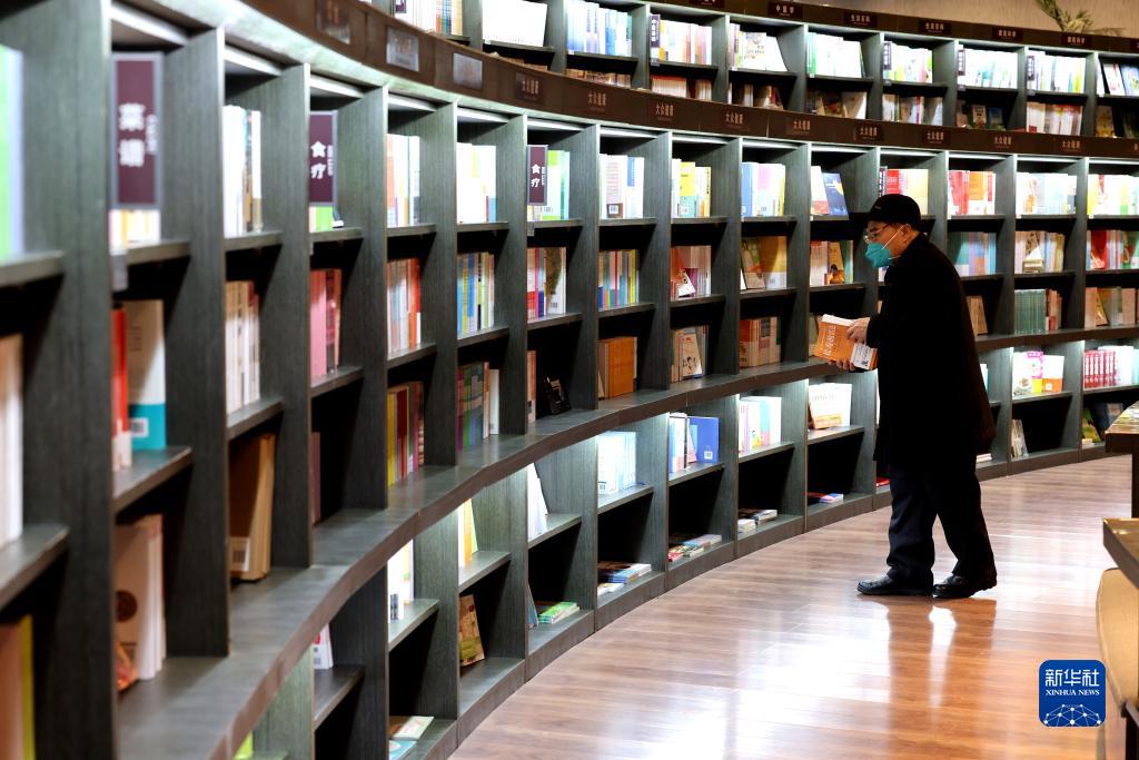 1月23日,一名讀者在山東省棗莊市魯南書城選購書籍。