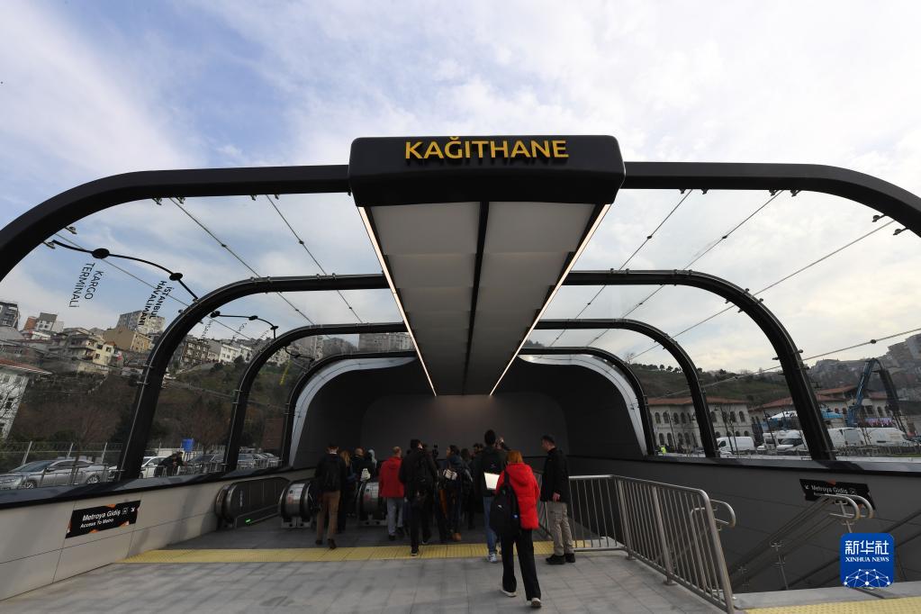 1月22日,在土耳其伊斯坦布爾,人們步入伊斯坦布爾新機場線卡厄特哈內車站。
