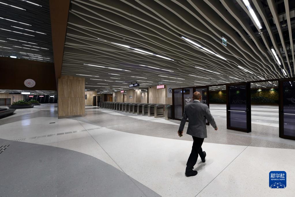 這是1月22日拍攝的土耳其伊斯坦布爾新機場線一車站內景。