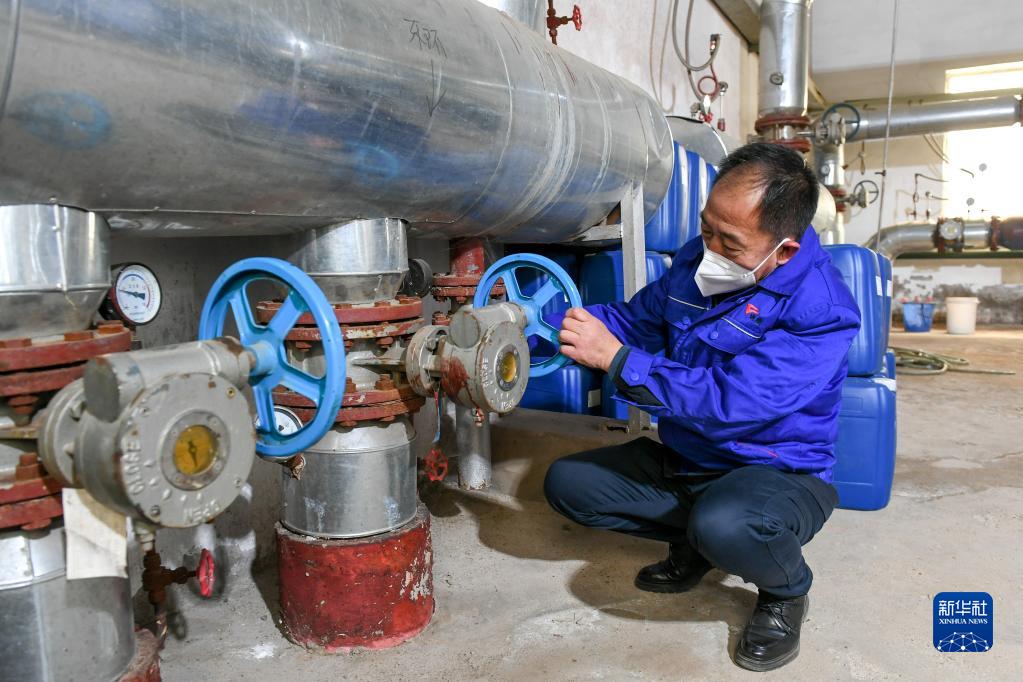 1月23日,在內蒙古呼和浩特市城發供熱有限責任公司金橋分公司運營四所,工作人員檢查供熱管道閥門。