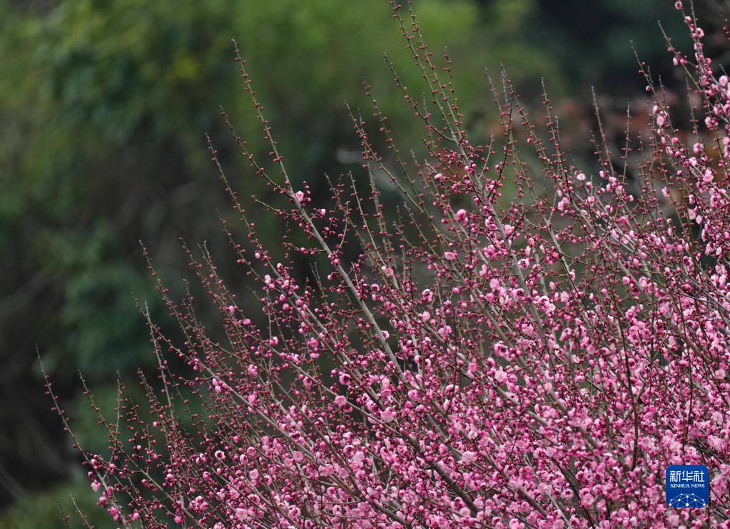 福州鼓山風景區相懷梅園里的梅花相繼綻放(1月23日攝)。