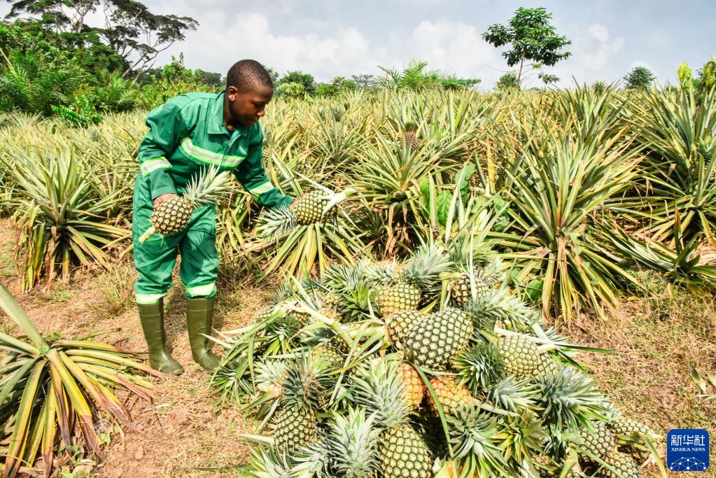 1月11日,在喀麥隆亞巴西,一名學生在農業職業技術中學實踐園摘菠蘿。