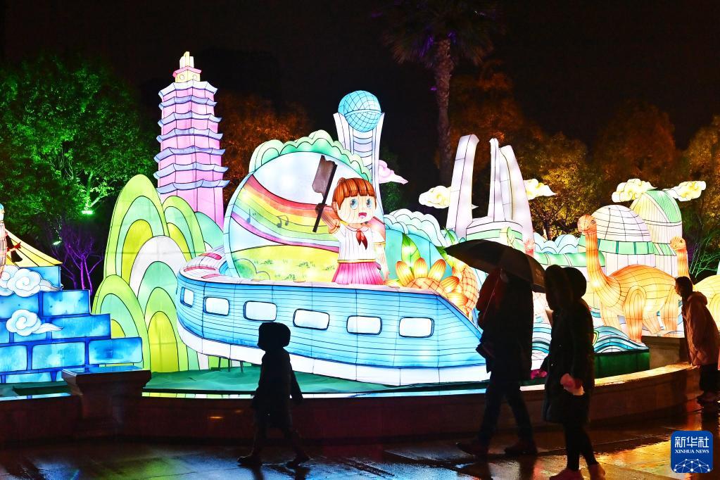 1月23日,游客在江蘇省常州市迪諾水鎮“2023常州燈會”賞燈。