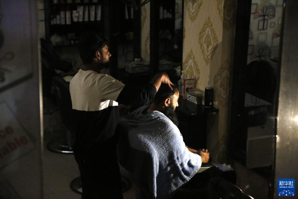 1月23日,在巴基斯坦伊斯蘭堡,一間理發店在大規模停電期間營業。