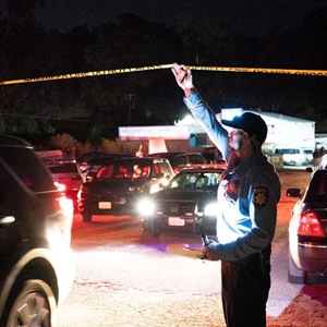 1月23日,執法人員在美國加利福尼亞州舊金山灣區半月灣市槍擊事件現場調查。