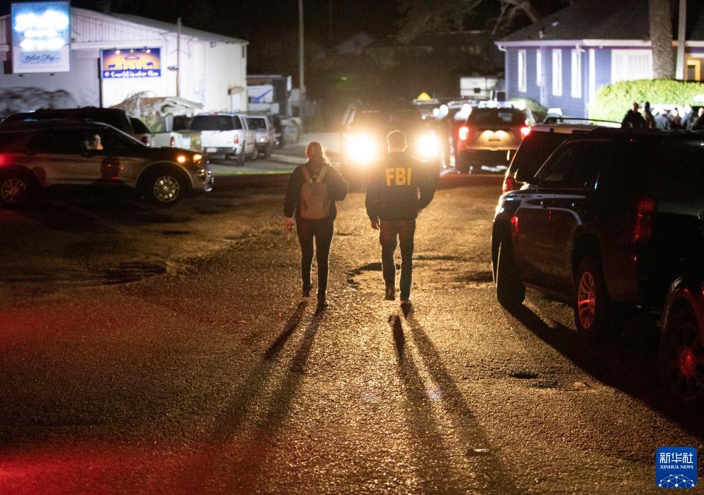 1月23日,執法人員在美國加利福尼亞州舊金山灣區半月灣市槍擊事件現場調查。