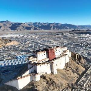 1月24日拍攝的日喀則市的清晨(無人機照片)。