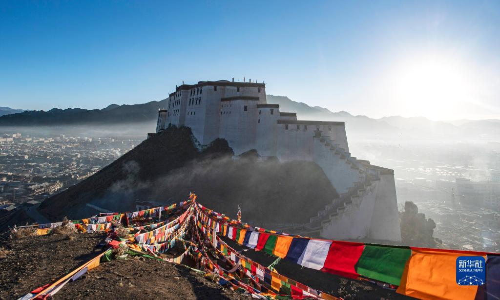 西藏日喀則地方藏歷農家新年期間,藏族群眾沿襲傳統,一大早就在山頂和自家屋頂上豎起新經幡,祈愿新年風調雨順、國泰民安。