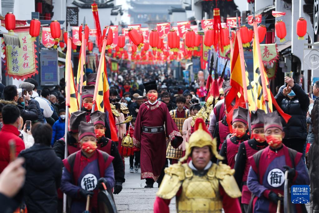 當日,浙江省杭州建德市梅城鎮嚴州古城開啟“宋福杭州年”新春系列文旅活動,包括古城開城儀式、“福祿壽三星”送禮、民俗演藝等豐富多彩的活動,展示獨具魅力的嚴州文化,讓游客感受古城宋韻。