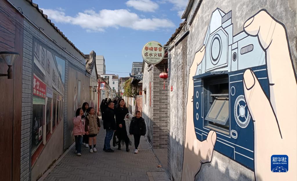 1月24日,游客在廣東汕頭龍湖區十一合村觀光游覽。