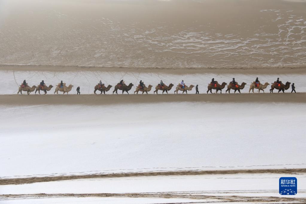 1月24日,游客在甘肅省敦煌市鳴沙山月牙泉景區游覽。