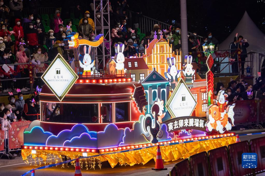 當日,澳門特區舉辦“兔躍盛世·歡樂春節”2023年農歷新年花車匯演。