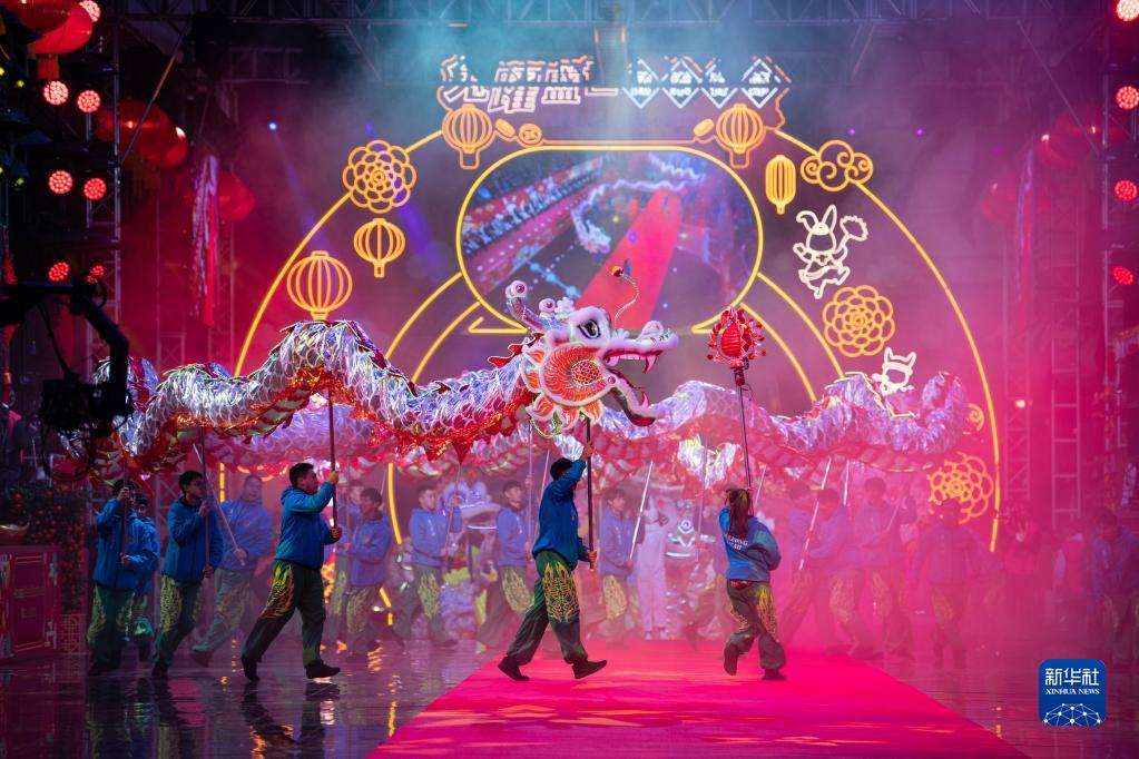 當日,澳門特區舉辦“兔躍盛世·歡樂春節”2023年農歷新年花車匯演。