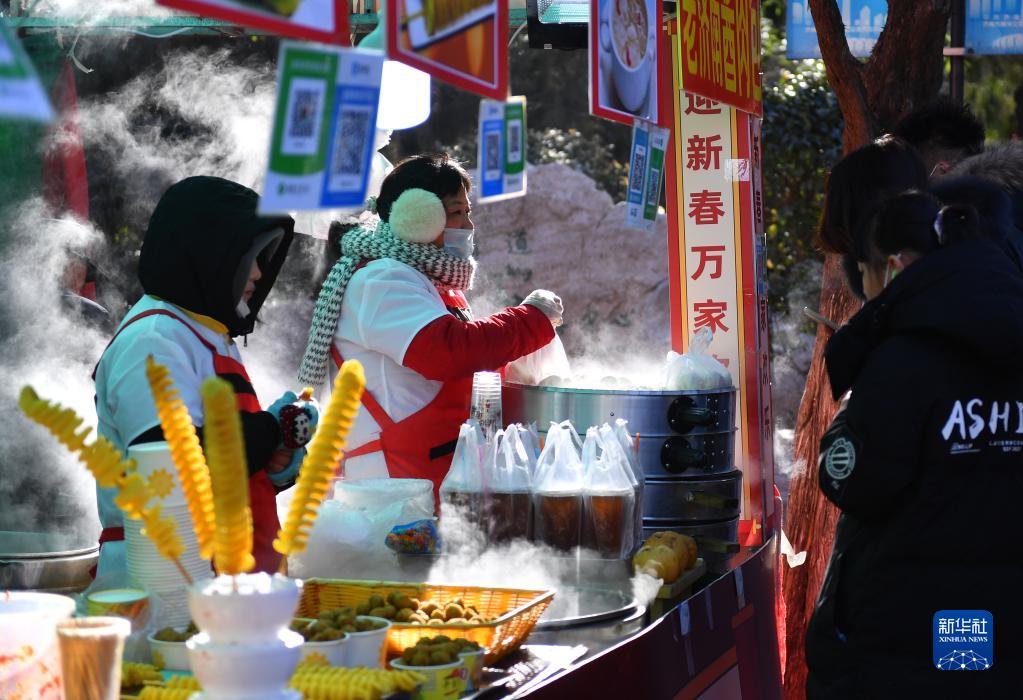 1月25日,游客在濟南千佛山新春游園會上選購美食。