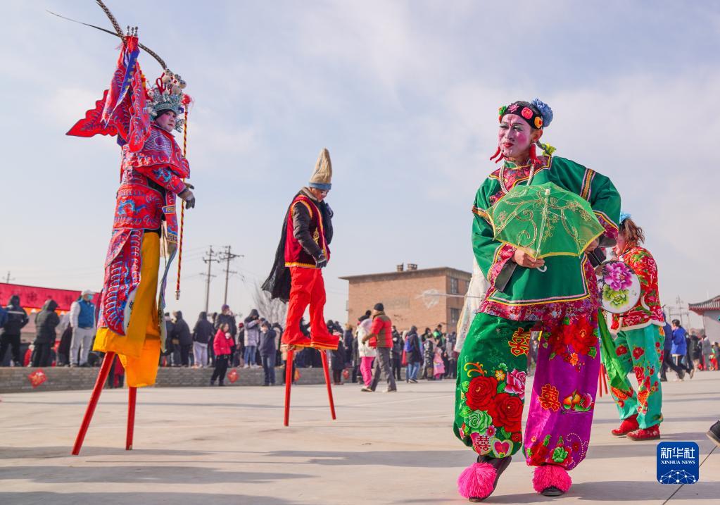 1月25日,民間藝人在河北省張家口市蔚縣蔚州古城進行社火表演。