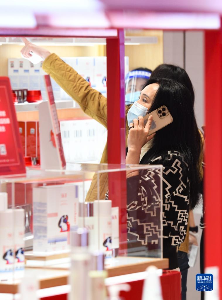 1月25日,游客在中免集團??谌赵聫V場免稅店選購免稅商品。