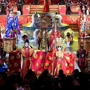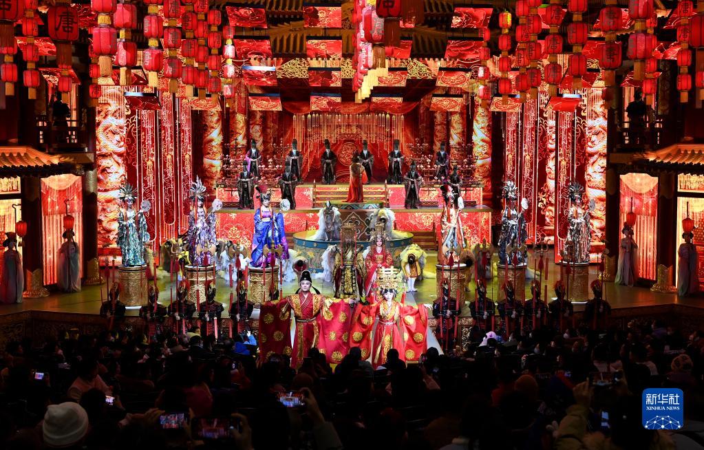 陜西西安大唐芙蓉園內上演的大型歌舞劇《夢回大唐》(1月24日攝)。