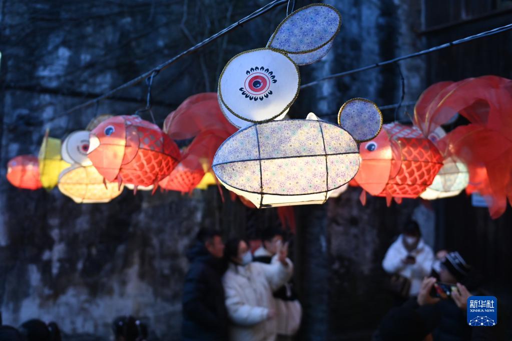 1月25日,游客在浙江省桐鄉市烏鎮景區參觀生肖主題花燈。