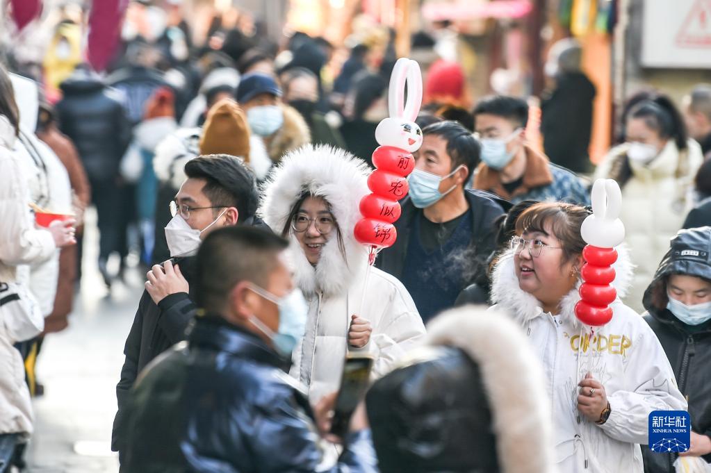 1月25日,人們在內蒙古呼和浩特市玉泉區通順大巷美食街逛街。