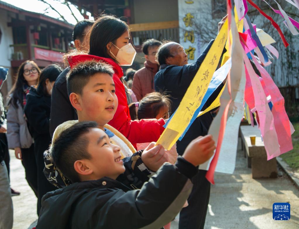 1月24日,在福建武夷山景區武夷宮步行街上,小朋友在猜燈謎。