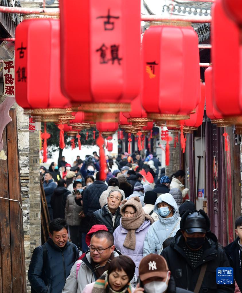 1月24日,游客在安徽省肥西縣三河古鎮景區游玩。
