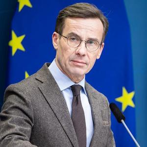 1月24日,瑞典首相克里斯特松在斯德哥爾摩出席新聞發布會。