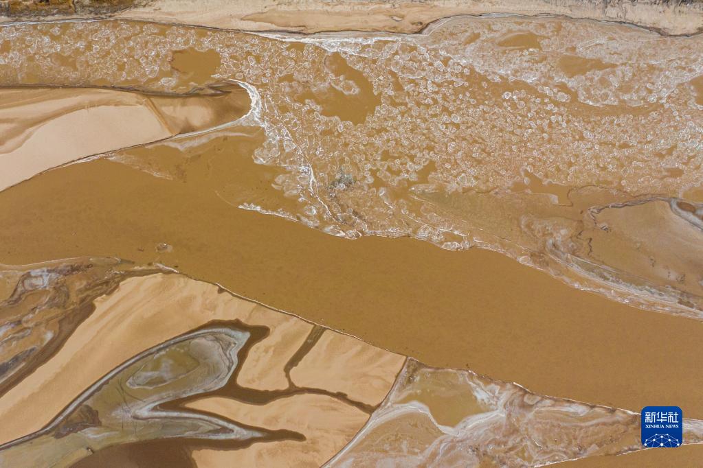 1月25日,黃河山東高青段流凌與河汊交織,呈現出別樣冬日景象(無人機照片)。