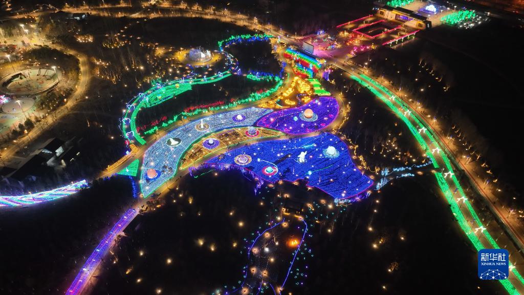 這是1月25日拍攝的河北省邢臺市園博園燈光秀(無人機照片)。