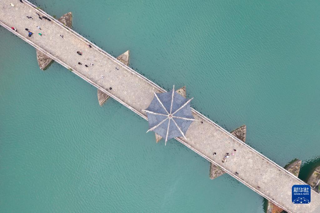 這是1月22日拍攝的貴州省黔東南苗族侗族自治州鎮遠古城祝圣橋(無人機照片)。
