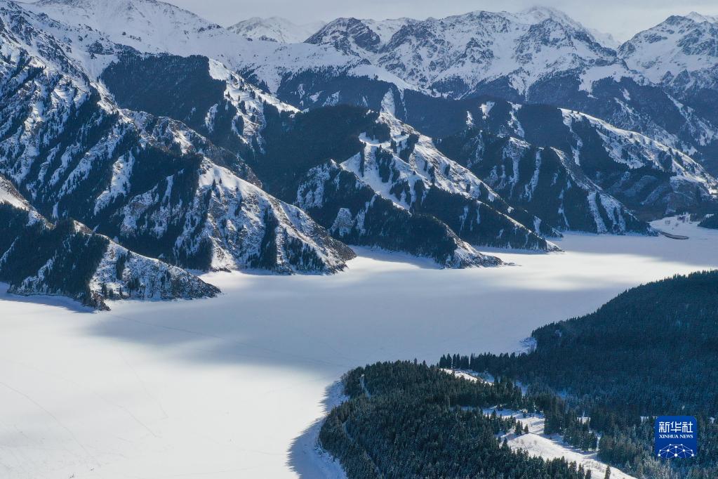 這是1月25日拍攝的新疆阜康市境內天山天池景區(無人機照片)。