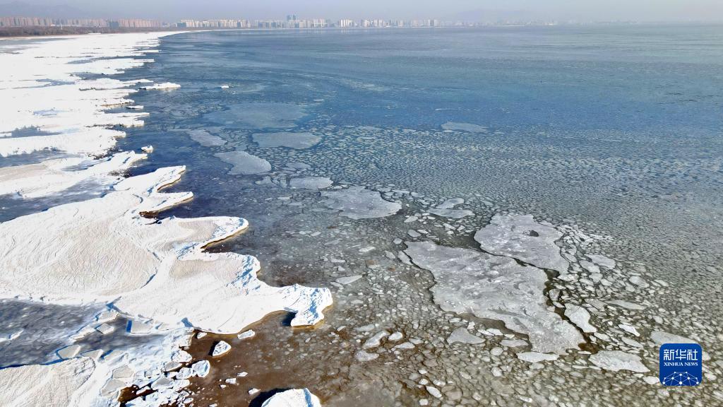 這是1月25日在河北省秦皇島市拍攝的海冰(無人機照片)。