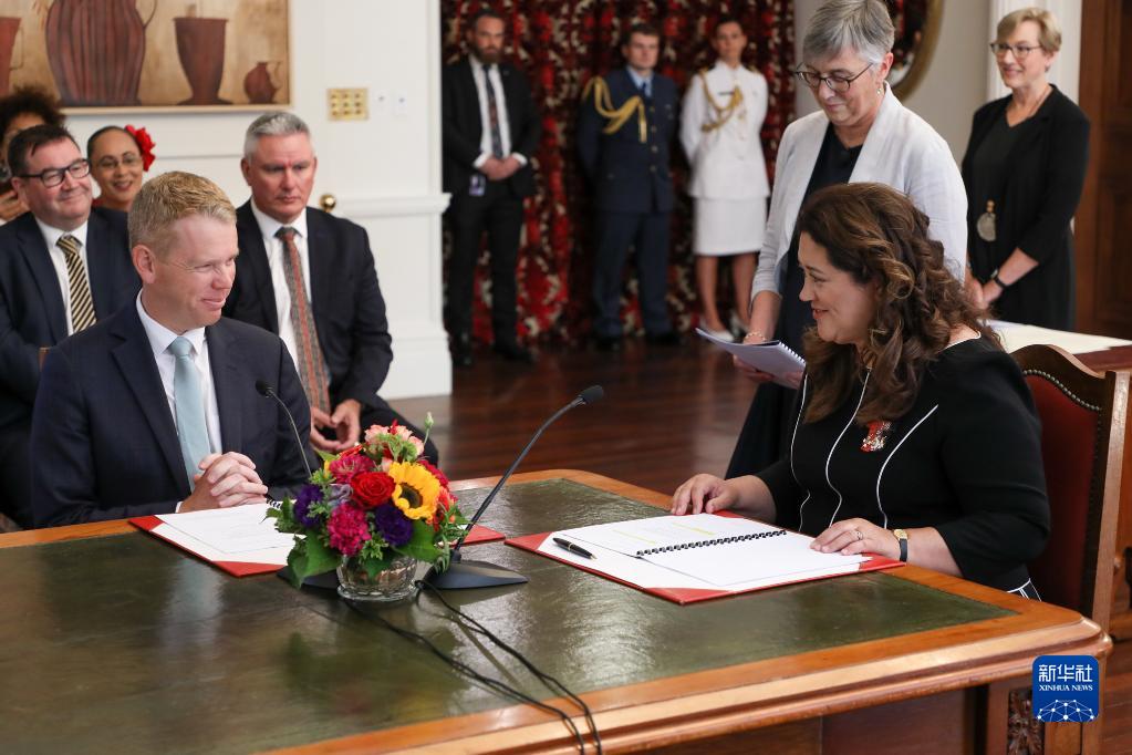 新西蘭執政黨工黨黨魁克里斯·希普金斯25日在新西蘭議會大廈宣誓就任新西蘭總理。