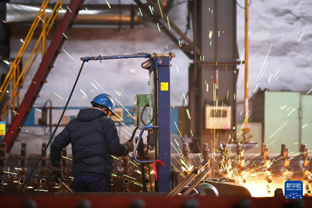 1月25日,工人在哈電集團哈爾濱鍋爐廠有限責任公司生產車間內作業。