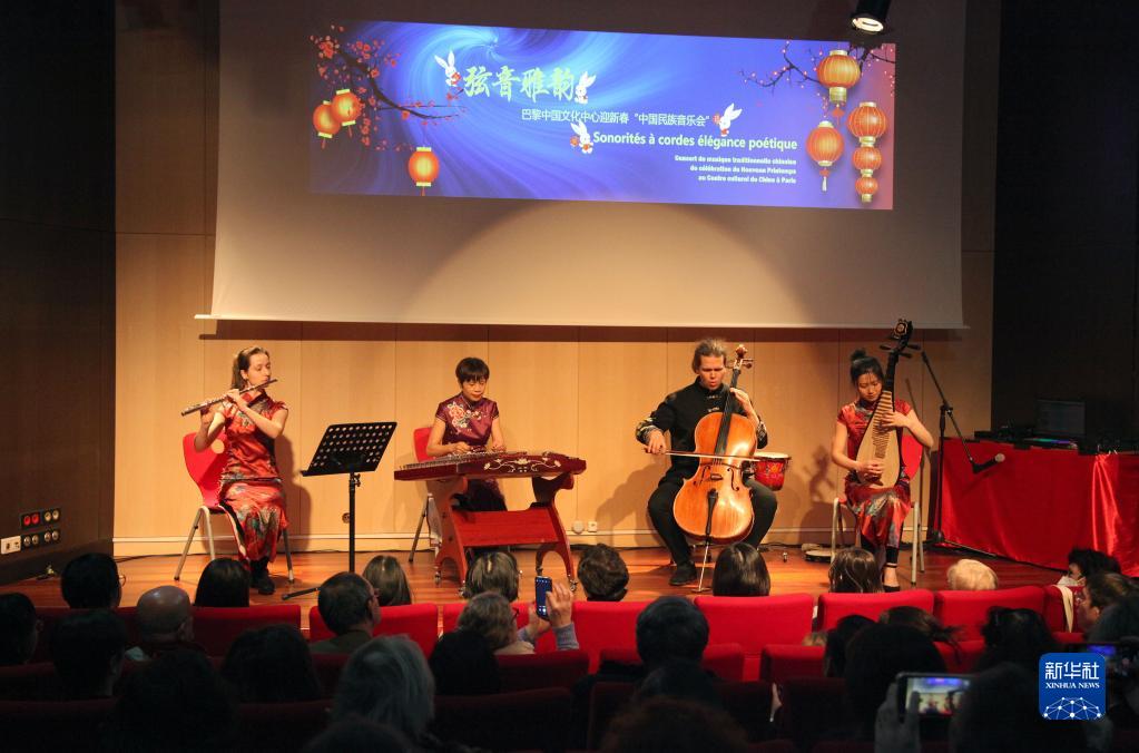 “弦音雅韻”中國民族音樂會當晚在法國巴黎舉行。這是巴黎中國文化中心舉辦的2023“歡樂春節”系列活動之一。