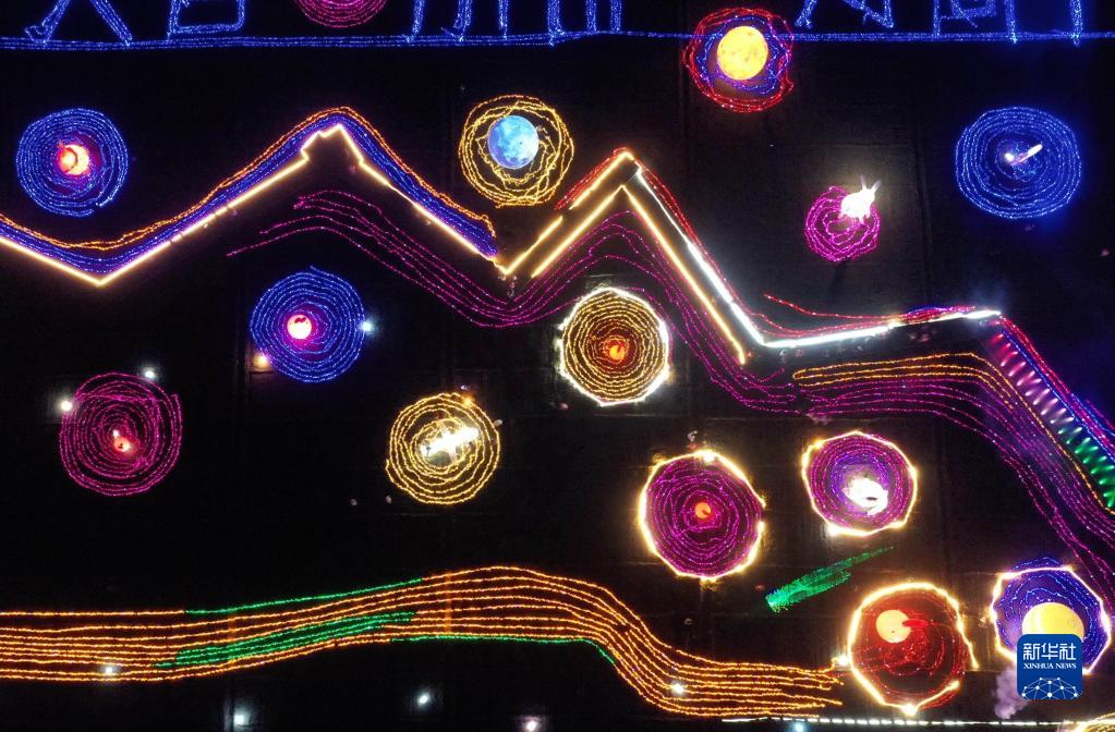 1月25日拍攝的河北省石家莊晉州市周家莊鄉第九生產隊的燈光秀(無人機照片)。