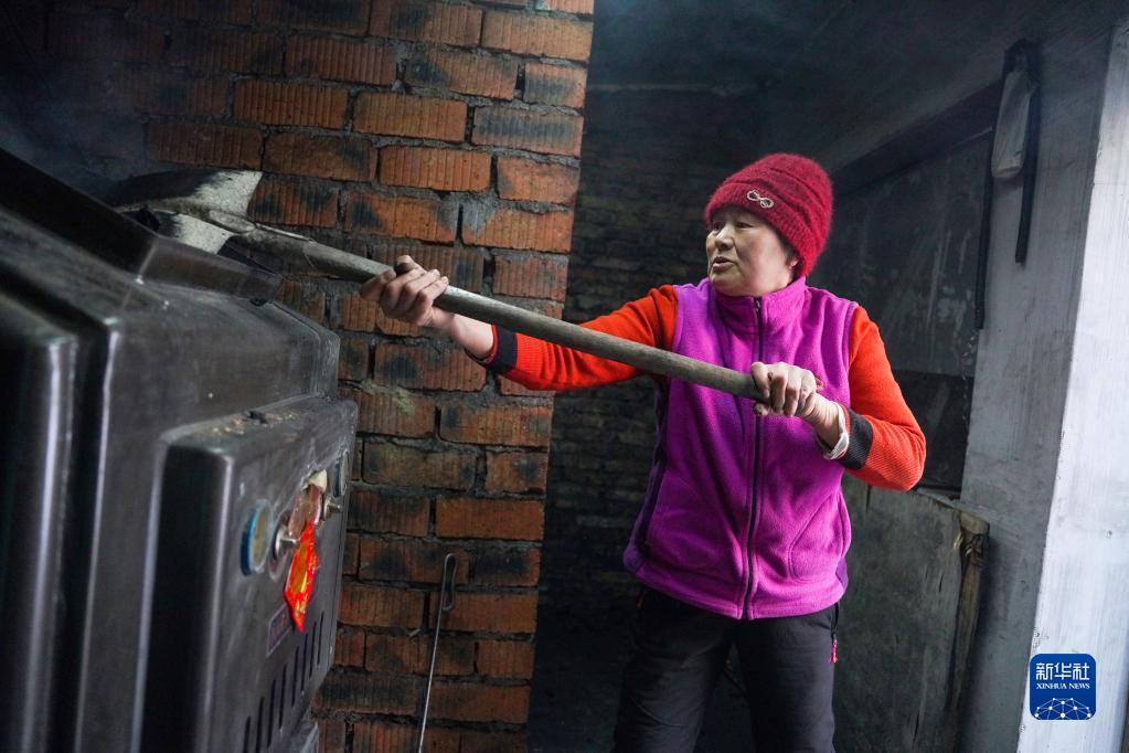 張紅霞給民宿里的火炕加熱(1月21日攝)。