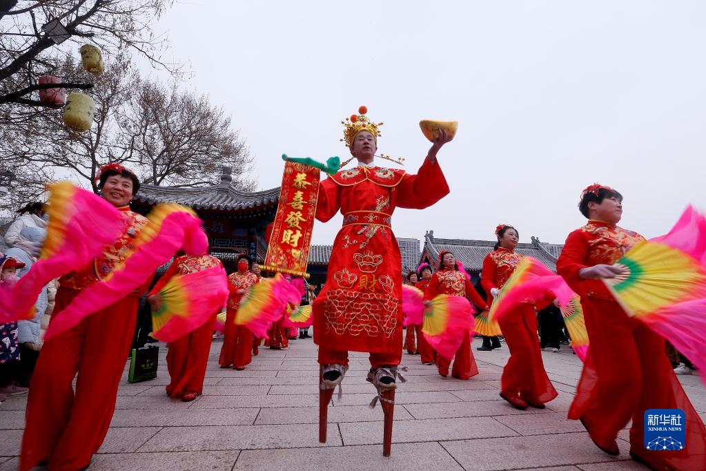當日,山東省青島市即墨古城舉行主題為“品年味、鬧新春”的民俗展演活動,當地的民間藝人歡聚古城表演舞龍、舞獅、旱船等傳統節目,在喜慶的氛圍中為市民和游客奉上文化盛宴。