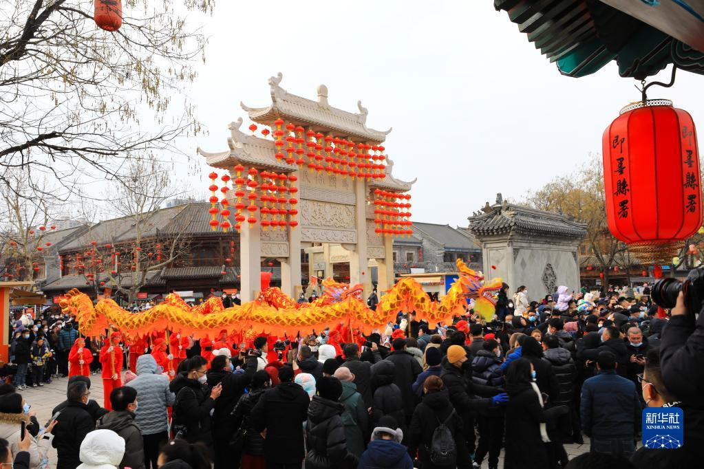 當日,山東省青島市即墨古城舉行主題為“品年味、鬧新春”的民俗展演活動,當地的民間藝人歡聚古城表演舞龍、舞獅、旱船等傳統節目,在喜慶的氛圍中為市民和游客奉上文化盛宴。