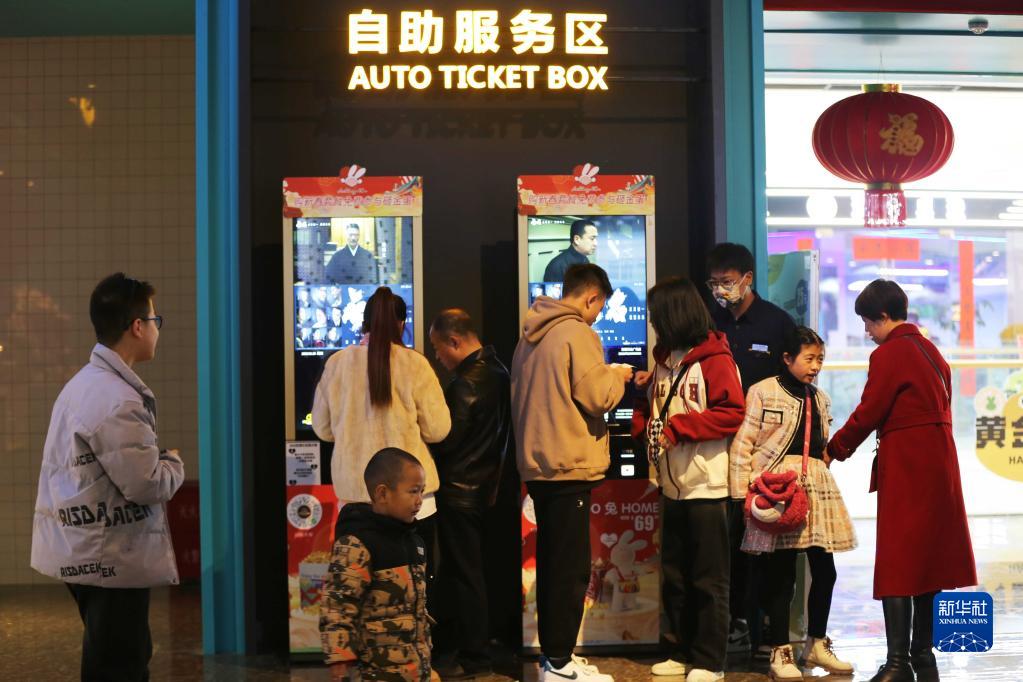 1月26日,人們在甘肅省定西市萬達廣場影城內購票。