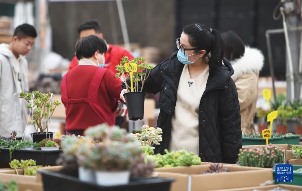 1月26日,市民在鄭州一處花卉市場選購多肉植物。