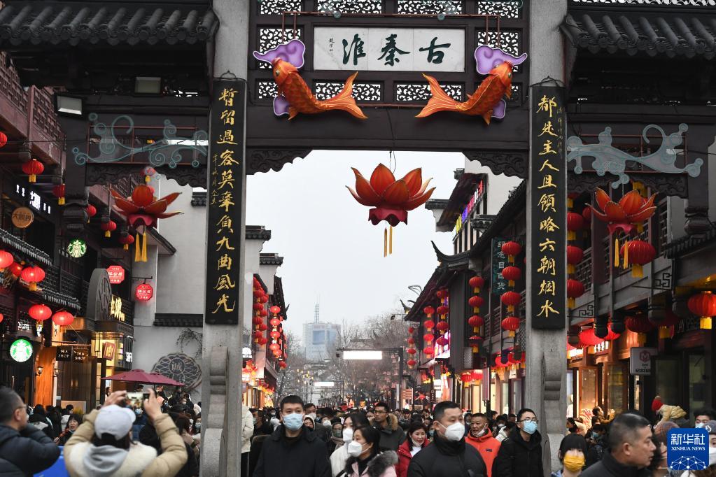 1月26日,人們在南京夫子廟景區休閑游玩。