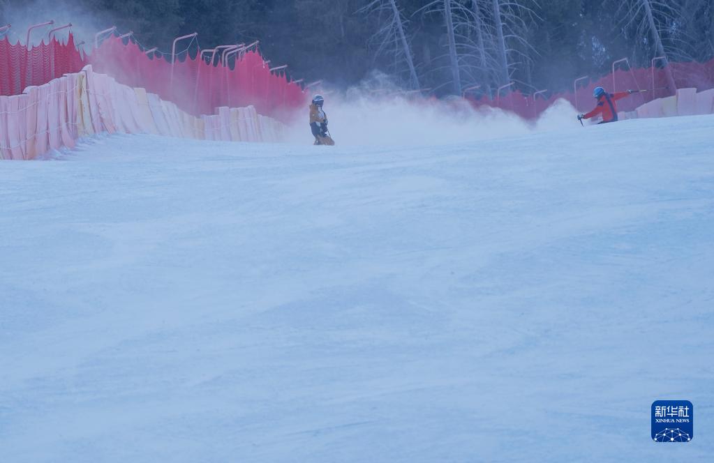 滑雪愛好者在絲綢之路國際滑雪場一處雪道上滑雪(1月25日攝)。