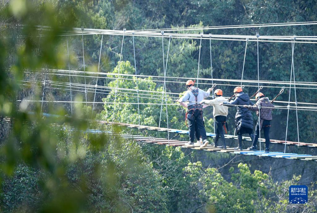 春節假期,人們前往地處鄂西山區的宣恩縣鑼圈巖地質公園,體驗天坑上空行走、深入洞穴探險等,學習地質知識,挑戰自我,樂享戶外休閑的樂趣。