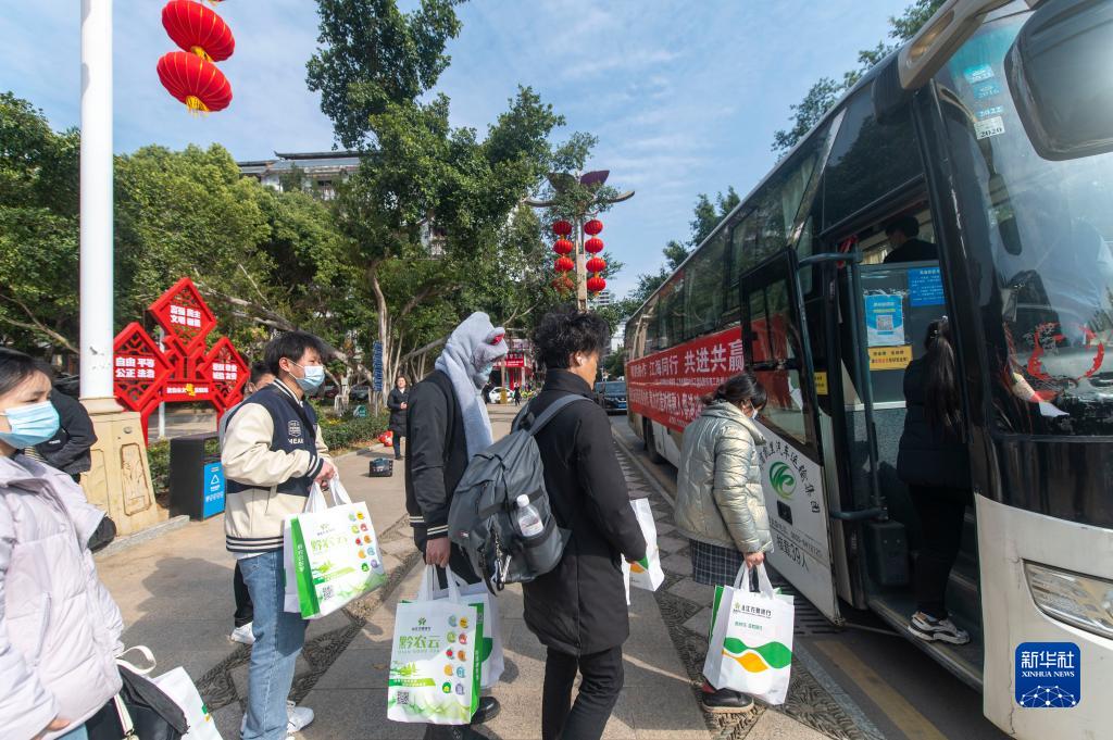 1月27日,黔東南苗族侗族自治州從江縣返崗群眾乘坐政府包車前往廣東省佛山市務工。