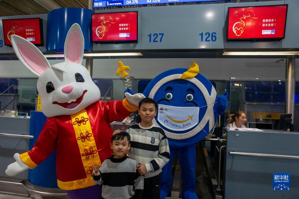 中國農歷兔年春節期間,希臘雅典國際機場推出兔子吉祥物,為乘客送上吉祥與歡樂。