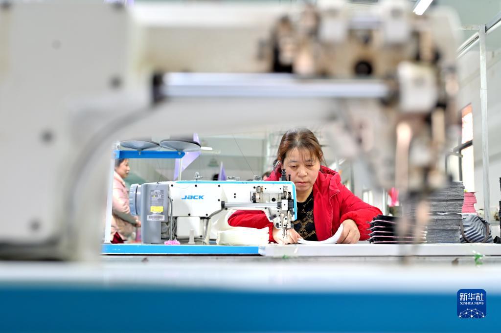 1月27日,在湖南省婁底市雙峰縣走馬街鎮一家箱包企業,工人在車間內忙碌。