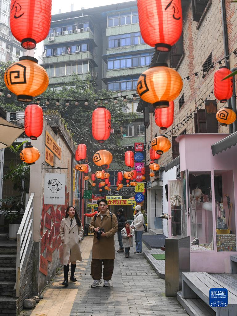 春節假期,重慶市江北區的北倉文創街區吸引不少市民和游客前來游覽。該街區由重慶市江北紡織倉庫老廠房改造而成,由城市公共圖書館、休閑商業區、文創辦公區等構成。