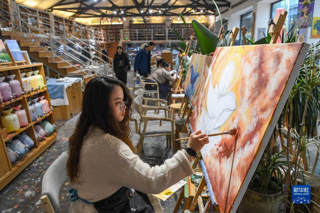 1月27日,游客在重慶北倉文創街區體驗繪畫。
